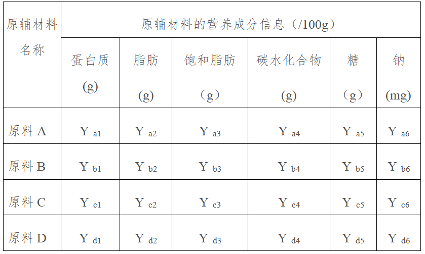 表3 各类原辅材料的营养成分信息
